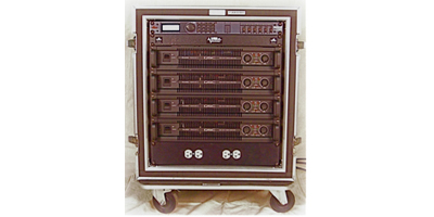 This rolling rack contains 4 QSC PL series amps and 1 DBX DriveRack 260 processor.