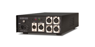 The Wybron PS-300 power supply not only provides 24 volts DC, but also a control signal using industry standard DMX/RDM. One unit can power up to 32 Forerunners.